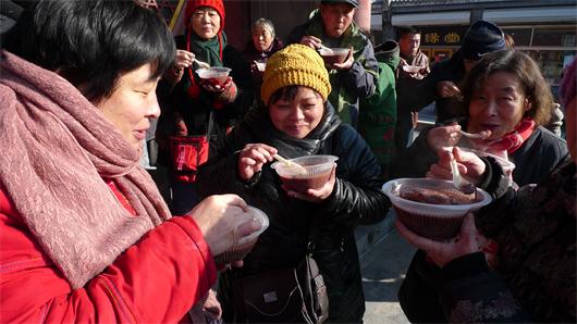 寺院还为市里的养老院送去了腊八粥,祝福老人们健康长寿。