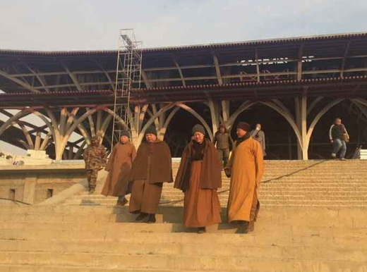 保定佛教资讯:2015年1月20日,河北省佛教协会会长明海大和尚一行驾临保定顺平佛光寺普照!受到了保定佛协会长真广法师及佛光寺大众的热烈欢迎,真广法师陪同明海大和尚参观了正在紧张施工的寺院各项工程,明海大和尚赞叹寺院建设的恢弘壮观,并随机对大众开示到:建寺院本身就是很好的修行方式,希望大众在发心奉献中体现自己的价值,实现自己修行。