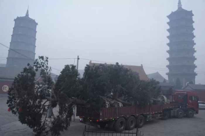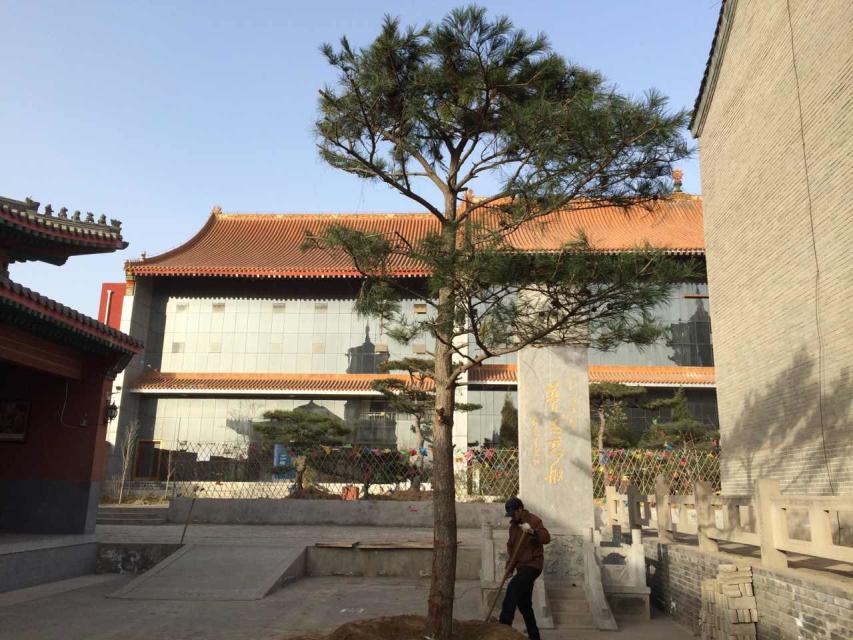 保定佛教资讯:2014年12月10日,每年的冬季植树时节又到了,保定清苑观音寺特地从山东联系了一批大型景观绿化树木“泰山景松”,于今天早晨运抵寺院,这些松树将被移栽在寺院内外空闲出。观音寺住持寂禅法师说:开展绿化活动,种树的好处有很多,是利益众生的大功德。 当今社会空气污染严重,已经严重危害到了众生的健康和生命,而树木可以吸收空气中的污 染物,所以植树就是在挽救众生的健康生命,而我们植树的话相应就会获得健康长寿的果报。