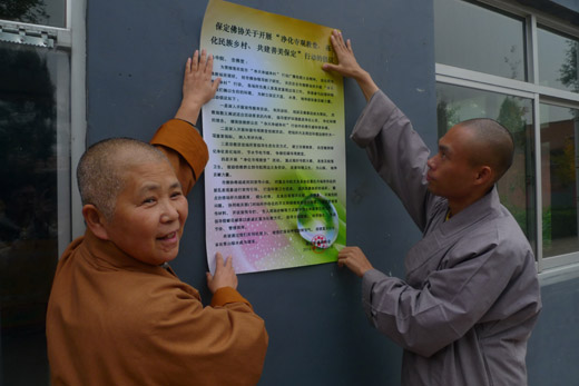 为落实市政府“净天、净城、净村”行动广播电视大会精神及市民宗局“净化寺观教堂、亮化民族乡村、共建善美保定”的通知,市佛协会长真广法师非常重视,立即召开领导班子会议,研究部署如何开展这项工作,首先向全市佛教场所发出倡议,然后由佛协领导班子带队携带宣传资料到各场所进行宣传。