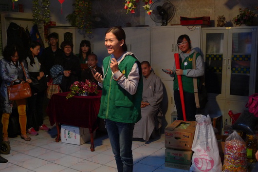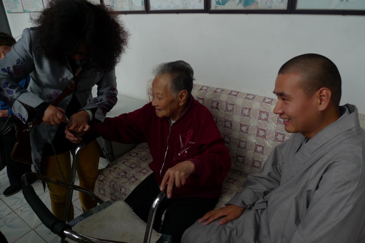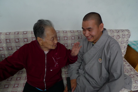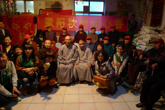 保定佛教资讯:2014年10月2日,九九重阳节,保定大慈爱心社副社长道悟法师、道和法师及爱心义工十余人带着给老人们准备的礼物来到春晖养老院慰问这里的老人,给老人们送去节日的祝福。