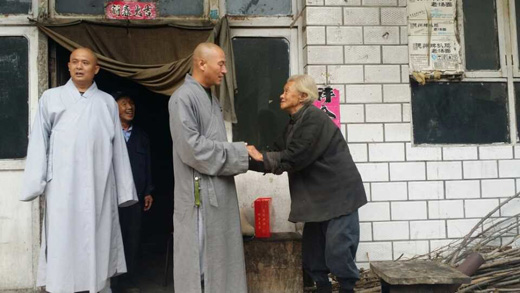 保定佛教资讯:2014年9月16日,保定顺平凤凰山佛光寺发扬佛教慈爱精神,积极响应主管部门关于“宗教慈善周”的号召,在住持真广法师的安排下,由副寺道智法师带领寺院常住法师、居士到顺平县南康关村、北康关村、康北村看望那里的生活困难、年老有病的孤寡老人,为他们送去关爱及生活物品,受到了老人们的欢迎。