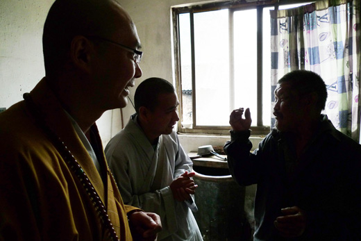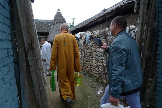 保定佛教资讯:2014年9月16日 保定佛协大慈爱心社一行在副社长道悟法师、道和法师带领下来到涞水县的白涧村、赵各庄、板城村救助那里的孤、寡、残老人。