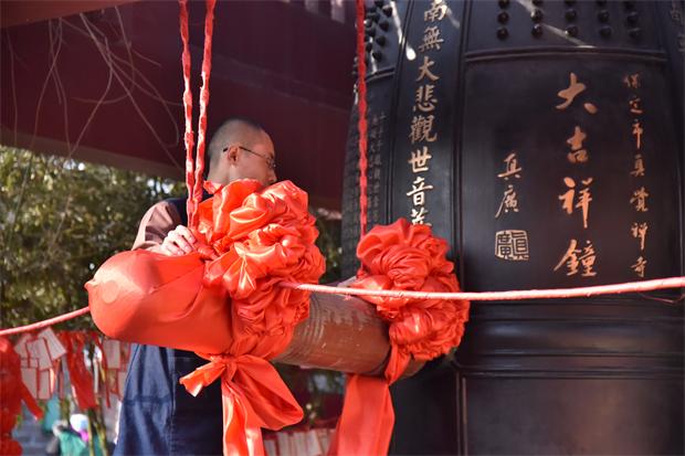 音乐餐会随着大慈阁悦耳和谐的吉祥钟声正式开始,由道本法师带领大家共同撞钟祈福。祈福国家繁荣昌盛;祈福世界和平;祈福在新的一年里大家身体安康、六时吉祥。