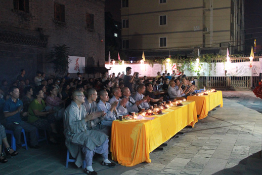 市佛协副会长寂禅法师带领大众进行了供灯祈福,祈愿社会繁荣和谐、人民幸福安康,市佛协会长真广大和尚问候了参加演出的演员、义工,并和大家合影留念。