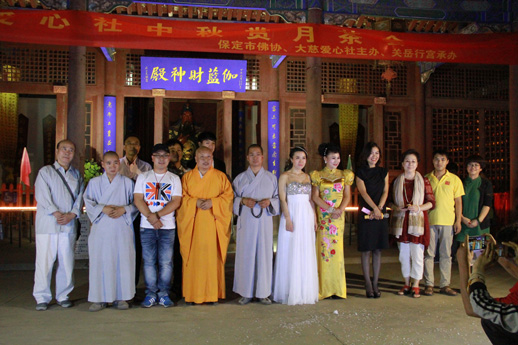 保定佛教资讯:2014年9月9日,农历八月十六,保定大慈爱心社在“关岳行宫”举办了中秋赏月茶话慈善晚会,保定大慈爱心社秉承市佛协会长真广法师为爱心社制定的“关爱孤寡残,送福到万家”的宗旨,爱心社自创办以来,发扬佛教的慈悲精神,关怀众生,赞叹众生,为众生做好事。在大众的支持下,持续的开展了一系列的慈善活动,尤其是在关爱孤寡残方面,做了大量的工作,赢得了社会各界的赞誉。