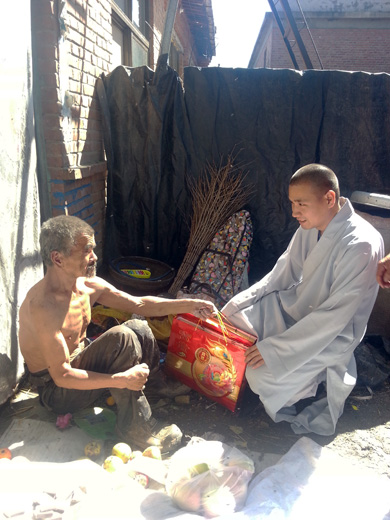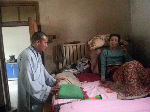 保定佛教资讯:在中秋佳节来临之际,保定大慈爱心社秉承市佛协会长真广法师为爱心社制定的“关爱孤寡残,送福到万家”的宗旨,在日常慈善活动的基础上,集中开展了一次中秋献爱心活动,活动由大慈爱心社常务副社长道悟法师组织实施,先后到徐水户木乡雁门村、新农村、清苑县南侯村看望孤 寡 残 贫困老人、为他们送去了节日的慰问和慰问品,说话聊天间,让老人们感到了人情的温暖,社会的关爱,随行的爱心社成员还帮助行动不便的老人家里进行卫生大清理。
