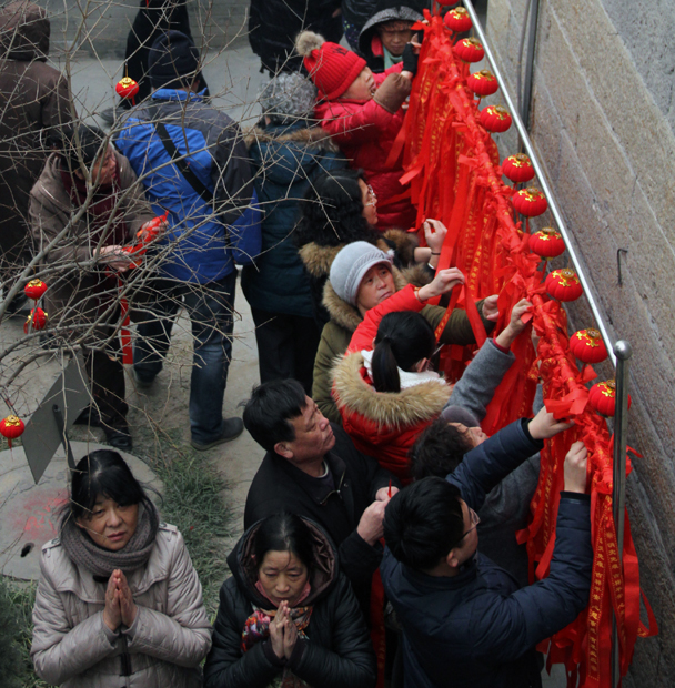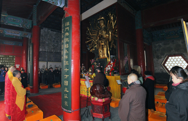 今年的大年初一,天气较以往有些寒冷,但寒冷也没有挡住人们来寺院祈福纳祥的热情,携老的扶幼的,相来到大慈阁这吉祥之地。或礼拜观世音菩萨、或布施供养佛、法僧做诸功德、或在寺院悬挂祈福平安符、或随众上殿诵经祈福。阿弥陀佛、过年好、拜年了及欢快的和谐之音不绝于耳。