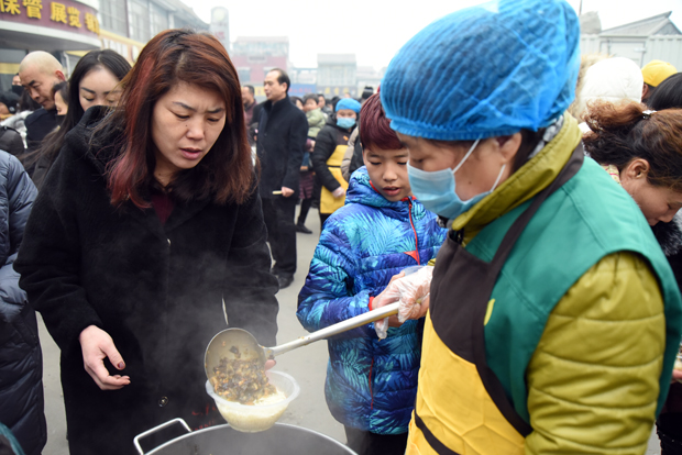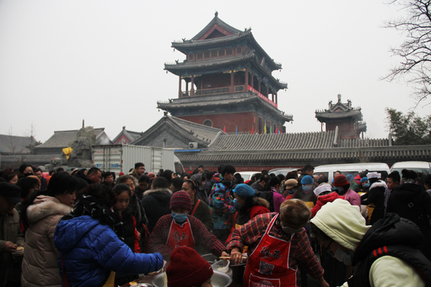大众排队领取平安面