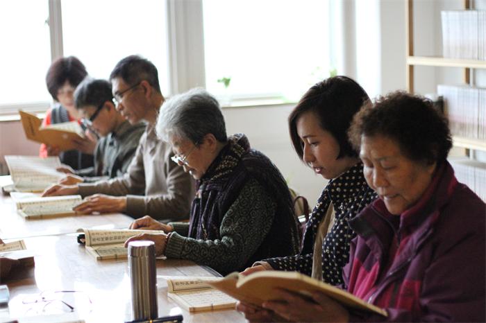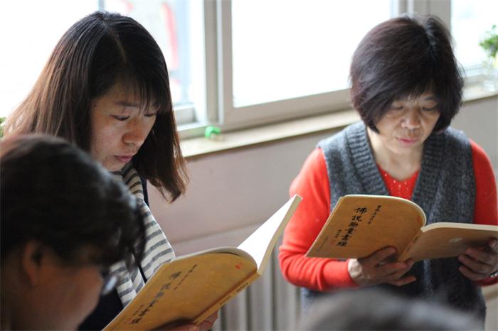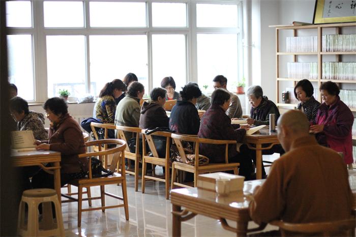 保定佛教资讯:2017年4月8日,春雨濛濛,从大慈十方书画院传出朗朗的读经声,读经熏修由道谦法师带领,众多老居士冒雨前来参加殊胜的读经共修活动,此次读诵的经典为《佛说无量寿经》。