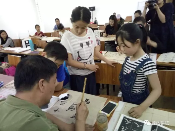 并亲自示范纠正同学们的书写姿势及执笔方法,与大家互动交流,回答同学们提出的问题。