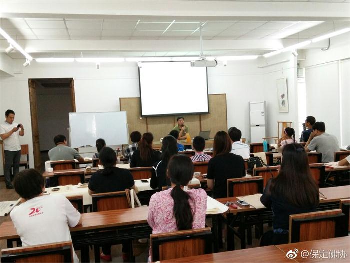 保定佛教资讯:2017年5月13日下午,保定“莲池讲坛”邀请著名书法家吴占良老师在大慈十方书画院主讲《楷书的临习》公益讲座,众多的书法爱好者聆听了此次讲座。
