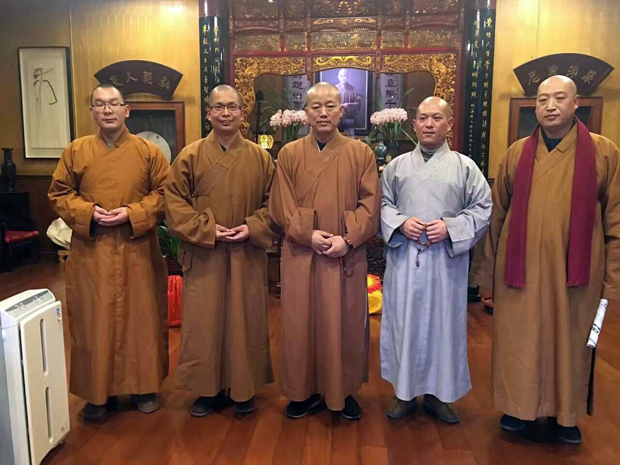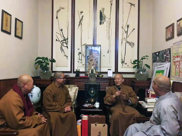 保定佛教资讯:2017年1月24日,春节临近,保定佛协副会长寂禅法师、道泓法师、如光法师一行代表市佛协和会长真广大和尚,前往柏林禅寺给河北佛协会长明海大和尚拜年,明海大和尚非常关心保定佛教弘法情况,对在会长真广法师引领下蓬勃发展的保定佛教予以赞扬,并连连赞叹真广大和尚的精彩书画作品,大和尚还详细地了解加拿大观音寺的具体建设发展情况,非常赞叹保定佛教开拓国际弘法视野,肯定建立海外道场的殊胜意义。一起交流世界佛教及其它宗教现状,讨论国际弘法的方向和善巧。