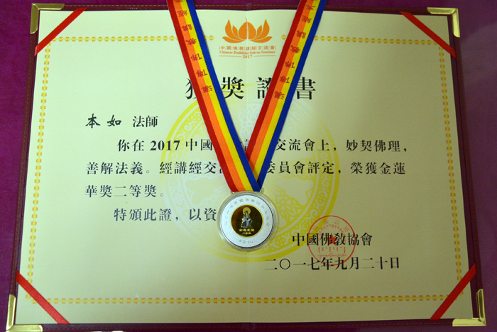 2017年9月17日—20日,由中国佛教协会主办,浙江省佛教协会协办,杭州市佛教协会和中国佛教讲经交流基地承办的“中国佛教讲经交流十年总结经验交流暨2017中国佛教讲经交流会”在杭州举行,来自25个省市区、佛教团体院校的28位竞赛法师角逐“金莲花”奖项。保定兜率寺监院本如法师代表河北省参赛,以《佛遗教经》为经典依据解读“如何利益众生”这一主题,经过中国佛教协会副会长明生法师、如瑞法师、静波法师等七位评委的认真评审,本如法师荣获“金莲花”二等奖。