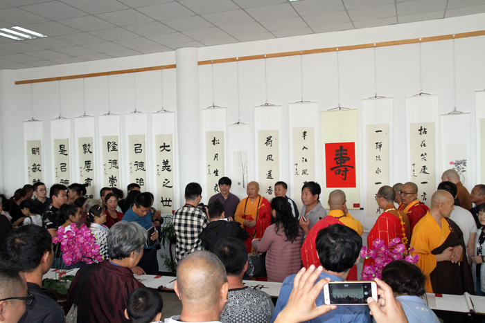 保定佛教资讯:2017年10月1日,国庆节,举国欢庆,在这最吉祥时刻,保定凤凰山大佛光寺隆重举办欢度国庆、喜迎十九大——真广法师书画展,用善美的文化浸润、引导大众,这是真广法师带领全市佛教界,大力开展文化活动,传播正能量,以实际行动践行社会主义核心价值观的具体表现,并以此来庆祝我们伟大的祖国68华诞,来自各地的法师、大众及书画界朋友随喜参加了这一盛事。