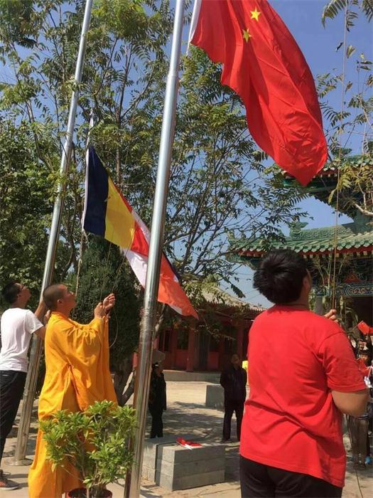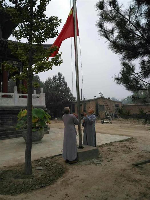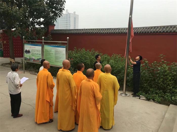 保定佛教资讯:2017年10月1日,为庆祝中华人民共和国成立68周年,喜迎党的十九大胜利召开。我市各寺院、念佛堂按照市民宗局通知精神,在国庆期间,纷纷举行升国旗、唱国歌的爱国主义教育活动。