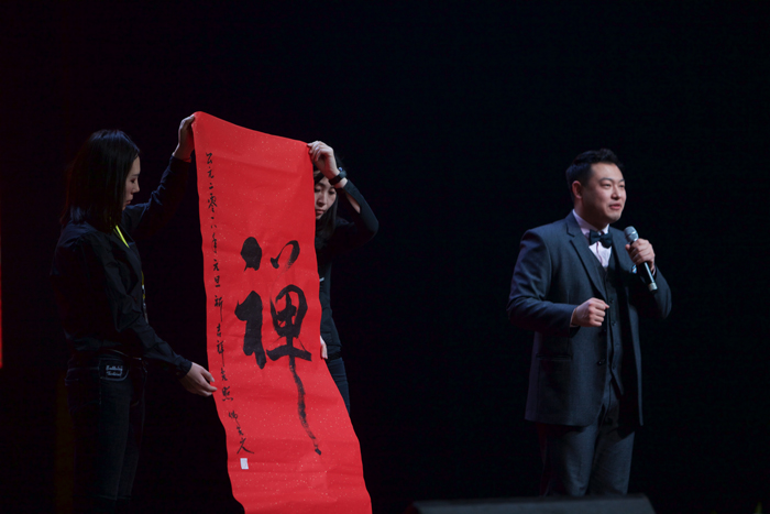晚会中,会长真广法师还将自己的一幅书法作品进行义拍,获得在场大众的热烈响应,所得款项,全部用于植树造林,绿化荒山。