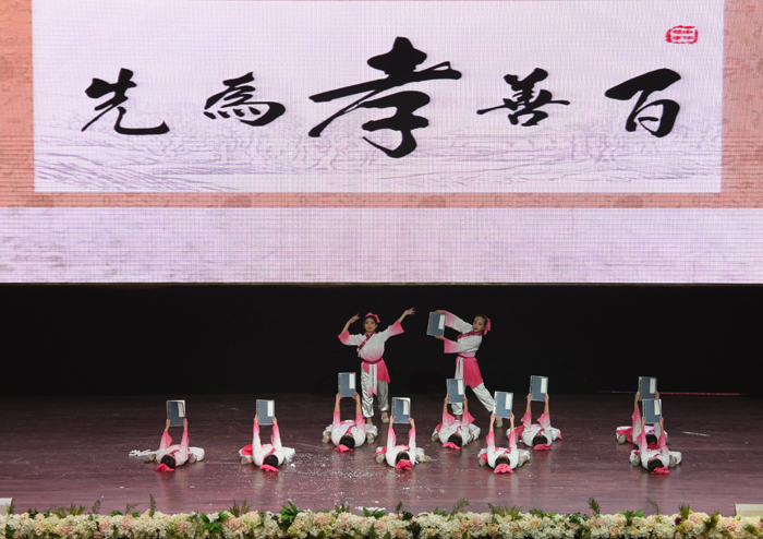 晚会随着由道悦法师法师和观音寺法师的《炉香赞》拉开序幕,今年的晚会以80后、90后的年轻演员为主,既有爱国题材的《红旗颂》、《飞得更高》、《好儿好女好江山》,也有浓郁传统文化和佛教文化的《悟》、古筝、禅茶、舞蹈等精彩节目。