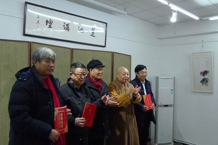 保定佛讯:2018年1月21日,“荒山有约”植树组委会和国艺馆保定馆在十方书画院举行揭牌仪式,市佛协会长、“荒山有约”发起人真广法师,市佛协副会长寂禅法师,道悦法师、法航法师、法华法师,道省法师、道悟法师,老领导及嘉宾近百人参加了揭牌仪式。