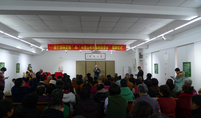 揭牌仪式由十方书画院、“荒山有约”植树组委会和国艺馆保定馆办公室主任赵奇主持,“荒山有约”植树组委会总干事法华法师和国艺馆保定馆发起设立人为苗冬青老师分别致辞。