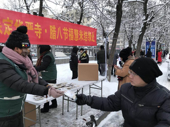 今年我市各寺院腊八施粥活动开展的有声有色,各具特点,如华严寺结缘5000份真空包装精品福慧米,每一份可供3~4口人食用,大慈阁、大佛光寺的罐装“八宝粥”,各寺院还广泛扩展施粥点,如兜率寺、观音寺、月明寺等寺院还在市区及城镇、乡村广泛开设施粥地点,方便满足了大众的希求,万佛寺、正信讲寺等寺院,以及雄安新区的灵觉寺、大佛禅寺等寺院也将活动开展的很好。