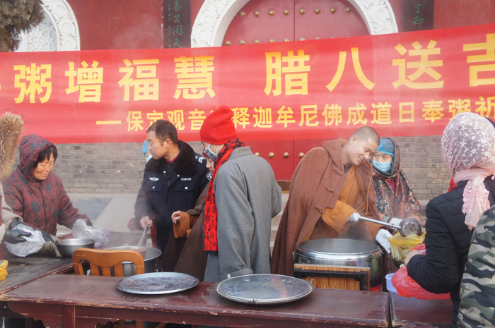 保定佛讯:2018年1月24日,农历腊月初八,是佛教教主释迦牟尼佛成道日,也是我国传统的腊八节,这一天,佛教寺院为纪念佛祖成道,普遍开展施粥活动,祈求吉祥,广结善缘,将祝福送到千家万户。