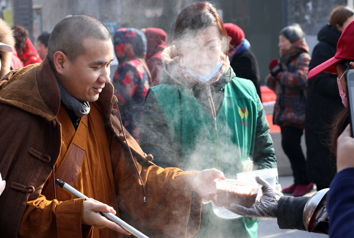 据不完全统计,全是在佛成道日期间,赠送腊八粥超过十万份(碗)。