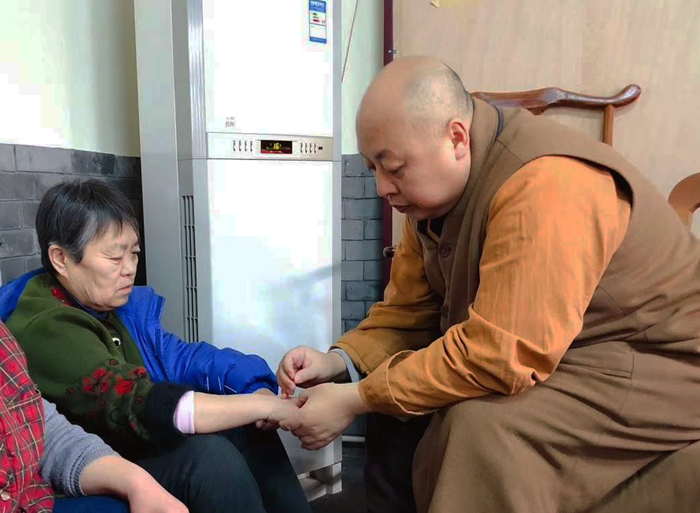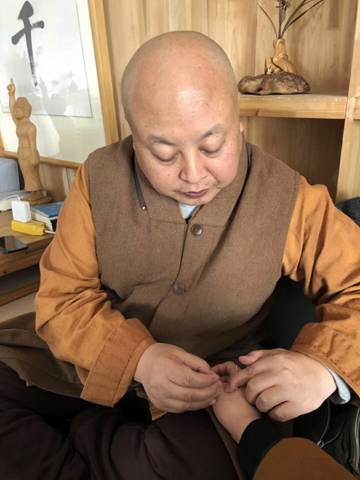 保定佛讯:2018年2月1日,最近几天,大慈阁兜率内院很是热闹,会长真广法师重拾多年前学得的针灸技术,为大慈阁的义工居士们进行针灸,缓解老居士们的身体不适,得到了老居士的欢迎,真广法师以慈悲的心态,娴熟的针灸手法, 加之独特的“群针”技法,治疗效果非常显著,陆续有很多人开始慕名来找真广法师针灸,半天下来,法师往往忙的连水都顾不上喝一口,却非常快乐!