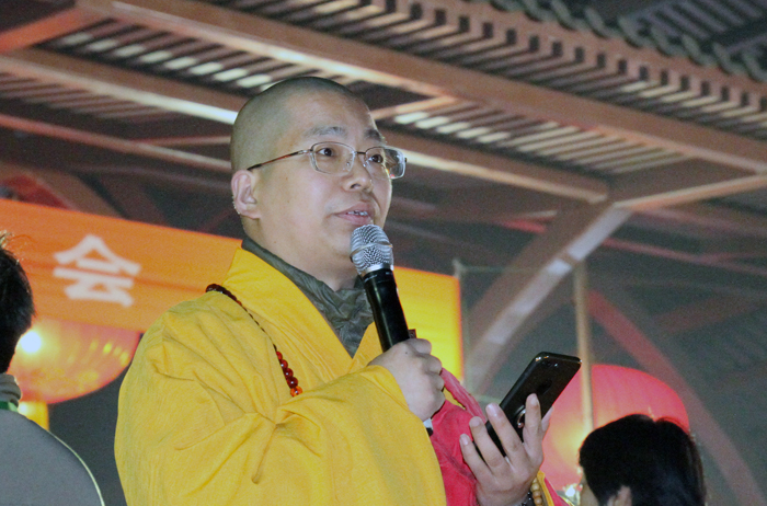 晚七时,法会正式开始。大佛光寺住持寂禅法师在致欢迎词中为大众讲解了供灯的功德和利益,以及在供灯中如何祈愿、供养、回向等。