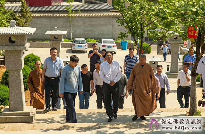 保定佛讯:2018年5月8日,保定市政协主席万书君一行在顺平县政协主席王若辉、副主席孙洪江及县乡有关领导的陪同下到大佛光寺参观调研.