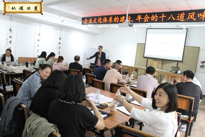 王老师从学习型团队构建,企业文化体系架构,企业文化层次体系等进行了精彩授课,讲课采取分组讨论,现场设计企业文化,回答问题,互动交流等形式,并亲自指导大家对如何办好企业的年会进行了实践。