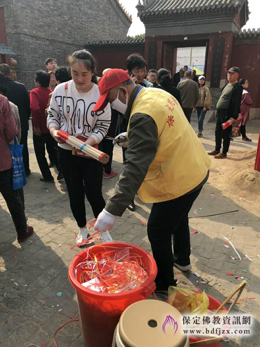 净塑环保不是说说而已,近年来,保定观音寺的义工们将这种意识落实在寺院的各种活动中,并开展贴心服务,及时收集香客用过的捆绳及塑料袋,防止塑料垃圾满天飞,并为大家讲解其危害性,宣传不做危害别人的事情,也是一种行善积德。
