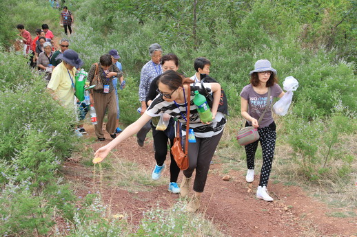 参加此次活动的大众有200余人,大家带着给鸟类的谷米、水等物,在满目绿色的佛光寺的路旁、树下投放,活动结束后,有些人去采摘寺院没有污染的山杏,有的人兴致勃勃开始了爬山锻炼,在即将完工的几个大殿旁、在山野、在树下,到处充满了人们的欢笑声。
