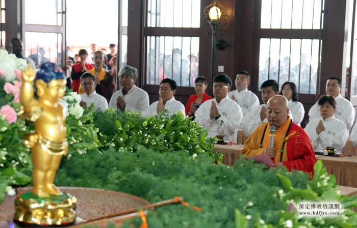 保定佛讯:2018年5月22日(农历四月初八),保定大佛光寺隆重举行庆祝释迦牟尼佛圣诞浴佛法会暨道安书院、弥陀殿奠基典礼,参加法会的有大佛光寺功德主以及来自各地的嘉宾、居士等,法会由市佛协会长、大佛光寺开山尊长真广法师主法。