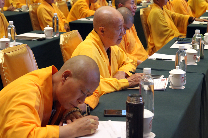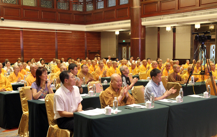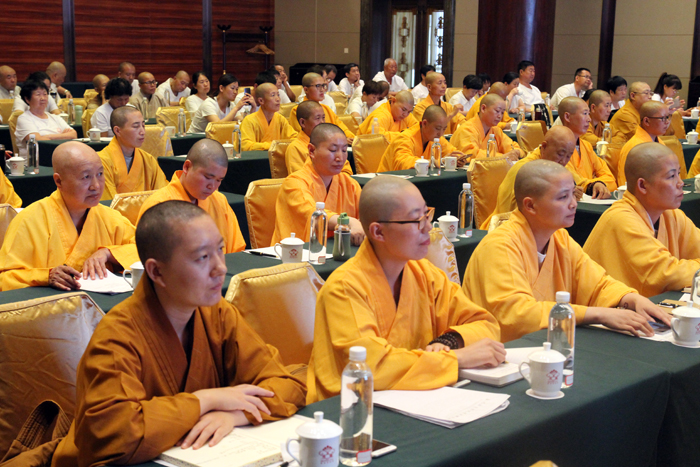 来自全市各寺院场所负责人及居士骨干近150人参加学习。