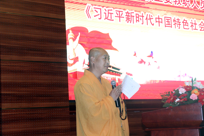 董局长指出《习近平新时代中国特色社会主义思想》为我们学习领会习近平新时代中国特色社会主义思想的思想体系提供了一个新的框架,要站在历史角度,运用马克思主义认识论和方法论,结合意识形态工作经验,深入理解习近平新时代中国特色社会主义思想的时代背景和现实意义,把握抓住习近平新时代中国特色社会主义思想核心内涵,融会贯通指导工作实际,开创佛教工作新局面!