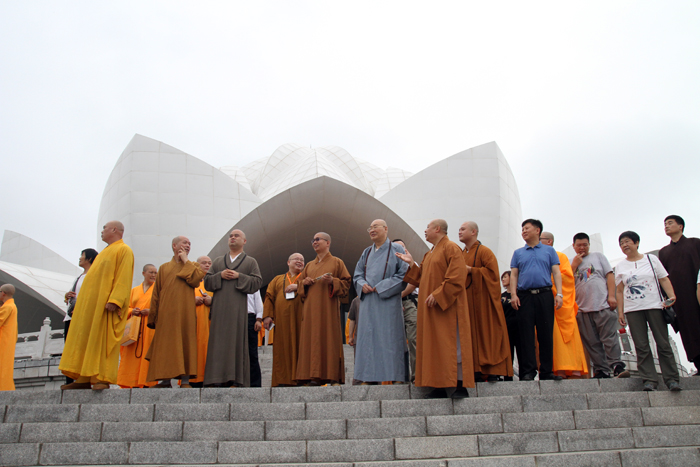 论坛开始前,全体与会人员来到大佛光寺——“道安大师曾经到过的地方参观考察,河北省佛教协会副会长、保定市佛教协会会长、大佛光寺开山尊长真广法师指着药师殿西边不远处云雾缭绕,奇绝雄伟的高山,对大家说:那就是古北岳恒山,当年,道安大师曾以此为中心弘扬佛法,普度众生。