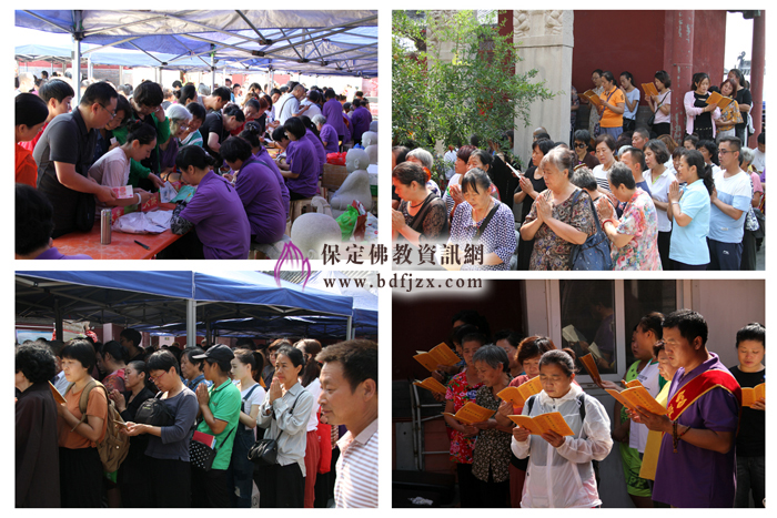 保定佛讯:2018年8月25日(农历七月十五), 保定真觉禅寺(大慈阁)举办盂兰盆报恩暨三时系念法会,庆祝结夏安居圆满,为大众广种福田,上报四恩,下济三苦。法会由市佛协会长真广法师主法,道悟、道谦、道明法师以及信众200余人参与盛会。