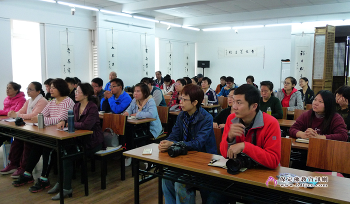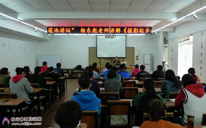 保定佛讯:随着人们生活水平的提高和社会的日益发展,摄影己广泛存在于人们生活的方方面面,成为人们生活中不可或缺的一部分。为满足广大摄影爱好者的需求,10月14日,保定"莲池讲坛"第302期在十方书画院举办了《摄影起步教学》社会公益讲座,由保定市摄影名家杨东彪老师主讲。 来自社会各界以及保定佛教场所的摄影爱好者及工作人员近50人参加了学习。