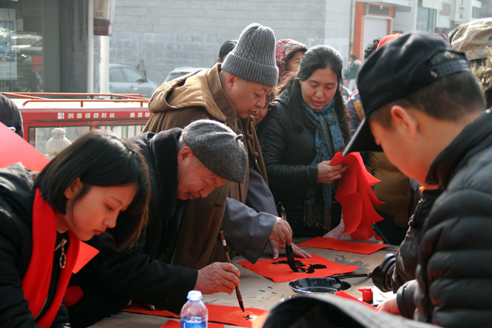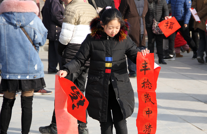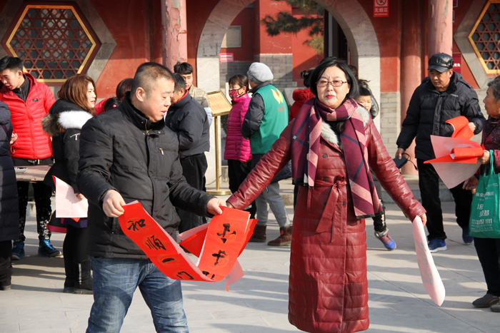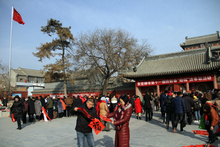保定佛讯:2019年1月28日,二十三,糖瓜粘,除尘祭灶贴春联。腊月二十三,是中国北方传统的小年。预示着新年的脚步越来越近。为增添节日的气氛,与大众结缘,保定真觉禅寺已连续十一年举办“赠福”送春联活动。