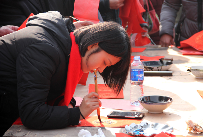 今年的大慈阁广场,显得格外干净整洁。明媚的阳光映衬着一张张欢快喜悦的笑脸,人们早早在排好队等侯着书法家们的到来。上午十点,赠福送春联活动正式开始。来自北京、雄安新区的二十余位书法家齐聚一堂,精神振奋。既有耄耋老者,也有青年才俊,既有女中毫杰,也有小朋友。大家习气凝神,挥毫泼墨,或龙飞凤舞、潇洒飘逸,或刚劲峻拔、方润整齐,现场热闹非凡,佳作频出。鼓掌声叫好声连续不断。一副副喜庆吉祥的春联,表达了书法家们对新春佳节的良好祝愿;一副副苍劲有力的精品佳作,展现了书法家们深厚的艺术功底。大慈阁真广法师也亲临写春联现场为大家加油鼓劲,并为大众书写福字,为大家送去新春的祝福!