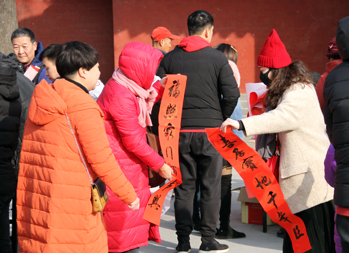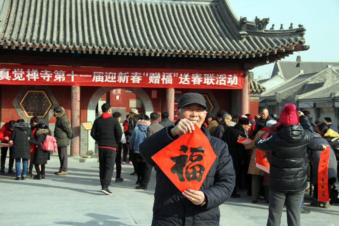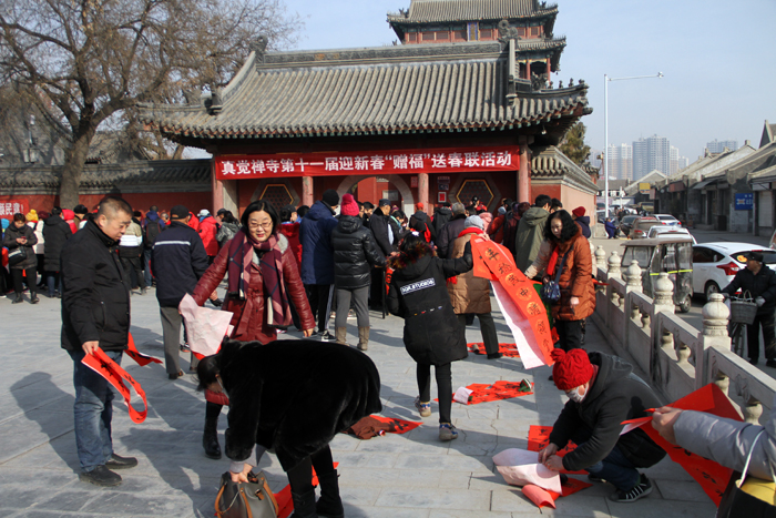 春联,是中国特有的文学形式,是中华传统文化的重要组成部分,它以对仗工整、简洁精巧的文字承载着人们对新一年的祝福和祈盼。真觉禅寺的送春联活动紧扣时代主题,积极响应主管部门的“双创四进”场所号召,在为人们送去祝福的同时,大力弘扬中华优秀传统文化,为社会和谐传播着正能量。