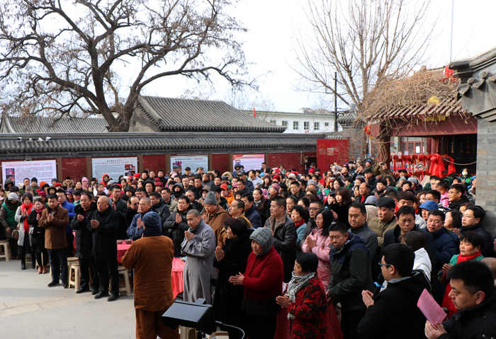 保定佛讯:2019年2月9日,农历的正月初五,真觉禅寺(大慈阁)一年一度的“祈福纳祥音乐餐会”活动又开始了,众多的居士、大众顶着凛冽的寒风,来到寺院参与这种有益身心的活动,过一个有意义的“破五”,随着祈福钟声悠扬的响起,吉祥和谐的音乐餐会开始。