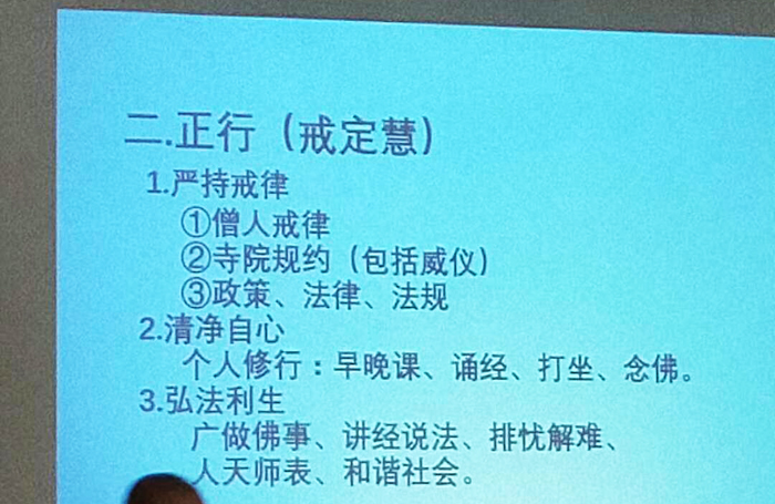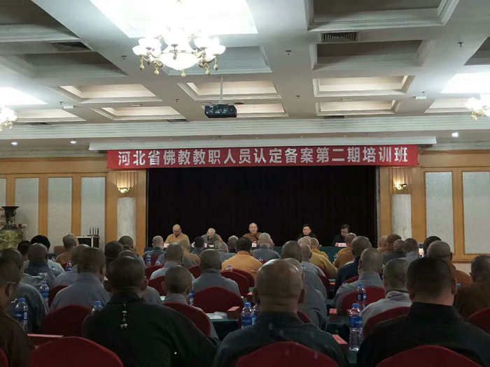 河北省佛教协会会长明海大和尚、河北省佛协秘书长李泓莅临培训班并讲话。