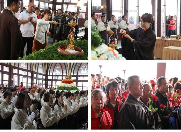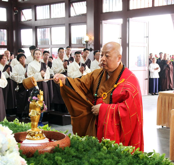接下来,大众怀着虔诚、感恩的心依次进行了浴佛,偈云:“我今灌沐诸如来,净智庄严功德海,五浊众生离尘垢,同证如来净法身”。大众感恩佛陀来到人间,大众期待,佛法能洗除众生的无明烦恼,能使众生增长智慧,利益社会。