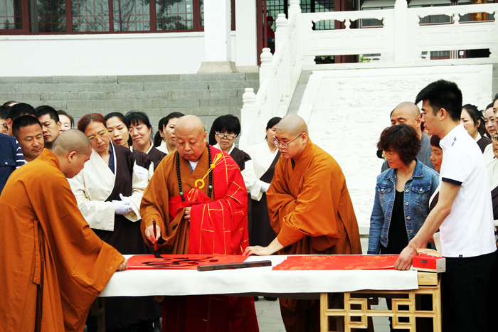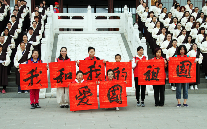 市佛协会长、大佛光寺开山尊长真广法师现场书写了爱国、我和我的祖国等书法大字