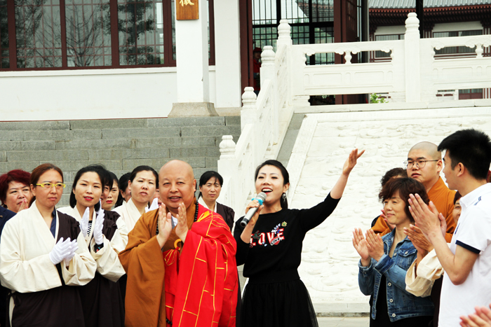 今年的浴佛节,正值伟大祖国即将迎来70华诞,亦是“双创四进“推向深入之时,保定市佛教协会庆祝建国70周年系列活动今天在大佛光寺浴佛法会拉开序幕,首先在山门殿举行千人同唱国歌、三宝歌仪式,以及由歌手李银霞领唱的《我和我的祖国》,市佛协会长、大佛光寺开山尊长真广法师现场书写了爱国、我和我的祖国等书法大字,活动现场气氛热烈,充分激发了广大佛教信众的爱祖国、报国恩的情怀!