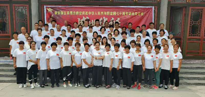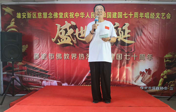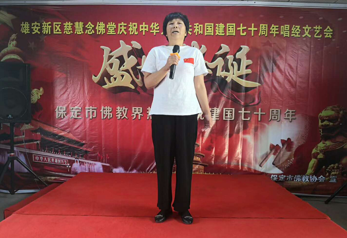 保定佛讯:2019年6月7日,雄安新区慈慧念佛堂,为庆祝中华人民共和国建国70周年,举办“唱经”文艺演出活动,念佛堂广大信众用他们特有的方式表达出了浓浓的爱国热情。