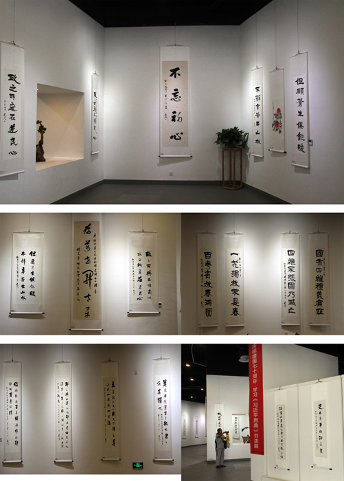 这次书法展是真广法师从《习近平用典》中摘录了110句经典名句,分别用行、隶、草书写成书法作品。内容涵盖敬民、为政、立德、修身、天下、法治等13个方面。供大家学习借鉴,这也是保定佛教界庆祝建国七十周年,深化“双创四进”的一项重要活动。