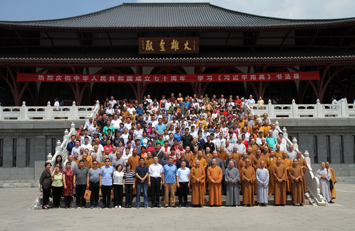 保定佛教资讯:2019年6月29日,保定佛协举办的庆祝建国七十周年暨学习《习近平用典》书法展在顺平大佛光寺美术馆隆重开幕。